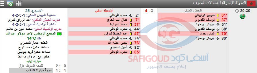 أسقط ليلة السبت، فريق أولمبيك آسفي، فريق الجيش الملكي بقلب مركب الأمير مولاي عبد الله بالرباط بأربعة أهداف مقابل ثلاثة،برسم الجولة 25 من البطولة الإحترافية، وفي مقابلة مثيرة توج خلالها اللاعب الكَودالي نجما كبيرا بتسجيله الهاتريك..