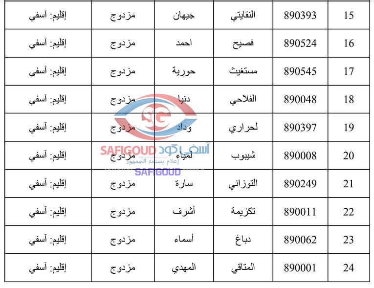 - اللائحة الكاملة للأساتذة الناجحين على صعيد مديرية التعليم بآسفي بسلك التعليم الابتدائي :